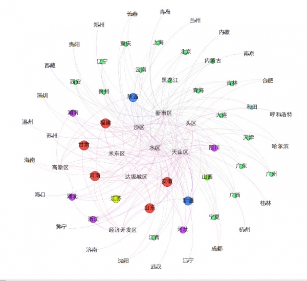 图1 2013年乌鲁木齐女性流动人口籍贯分布图